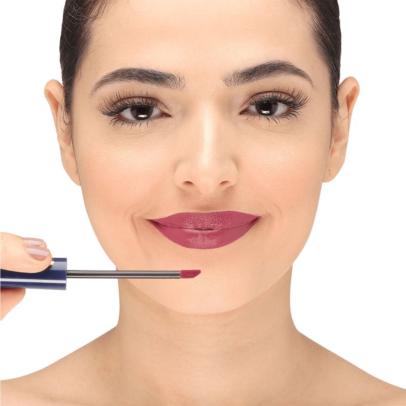 Aplique uma camada na parte superior e inferior dos lábios. Espere alguns segundos para a secagem do produto. Se necessário, aplique uma nova camada, retocando ou intensificando a cor até atingir o efeito desejado.