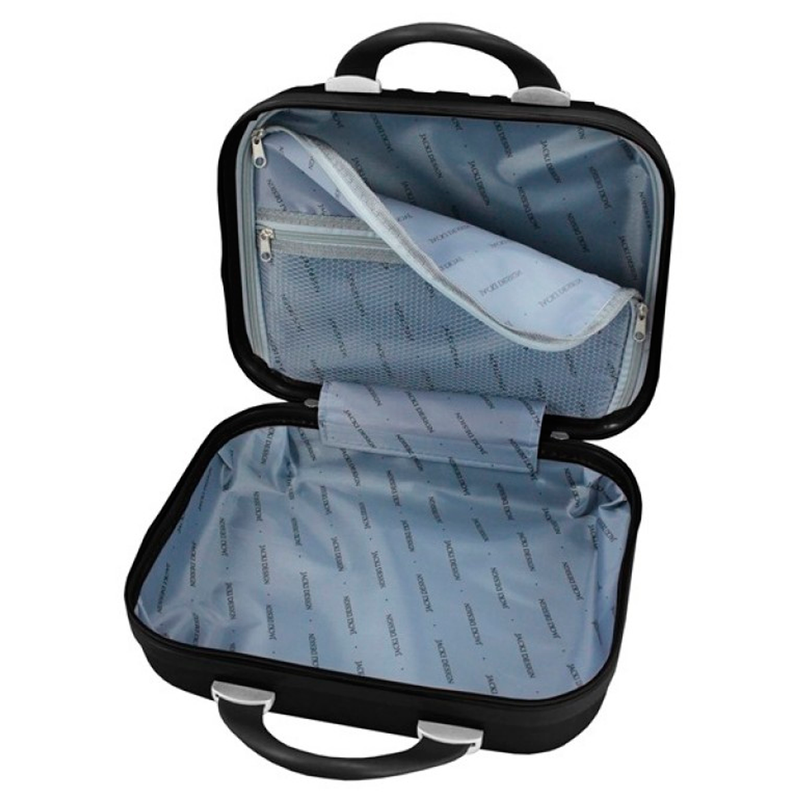 A Frasqueira de Viagem Trip Jacki Design é essencial para a sua viagem! Feito de material Policarbonato e ABS resistente. Possui um amplo espaço interno, divisória central com bolsos organizadores e sistema de alça carona para acoplar no carrinho da mala e facilitar no transporte. Ideal para guardar maquiagem, documentos, e acessórios pequenos.
