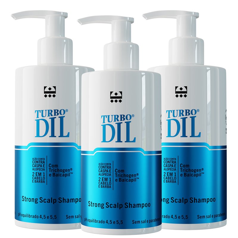 O Turbodil Strong Scalp Shampoo foi formulado especialmente para o couro cabeludo e os fios que precisam de força desde a raiz. Diferente de shampoos comuns, ele respeita o pH fisiológico do couro cabeludo e a estrutura mais densa dos fios, oferecendo limpeza profunda sem ressecar — e preparando o terreno para que os ativos do tratamento atuem com máxima eficácia.