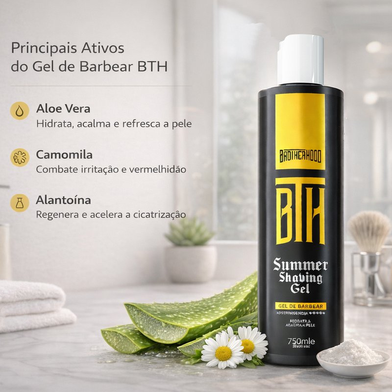 Gel de barbear BTH Summ possui fragrância masculina sofisticada, com toque cítrico suave e moderno, combinando notas de laranja, pimenta-preta, gerânio, musgo, âmbar e almíscar, criando um frescor equilibrado sem agredir a pele.