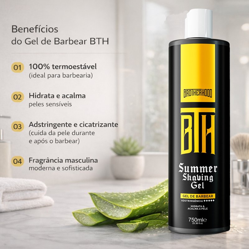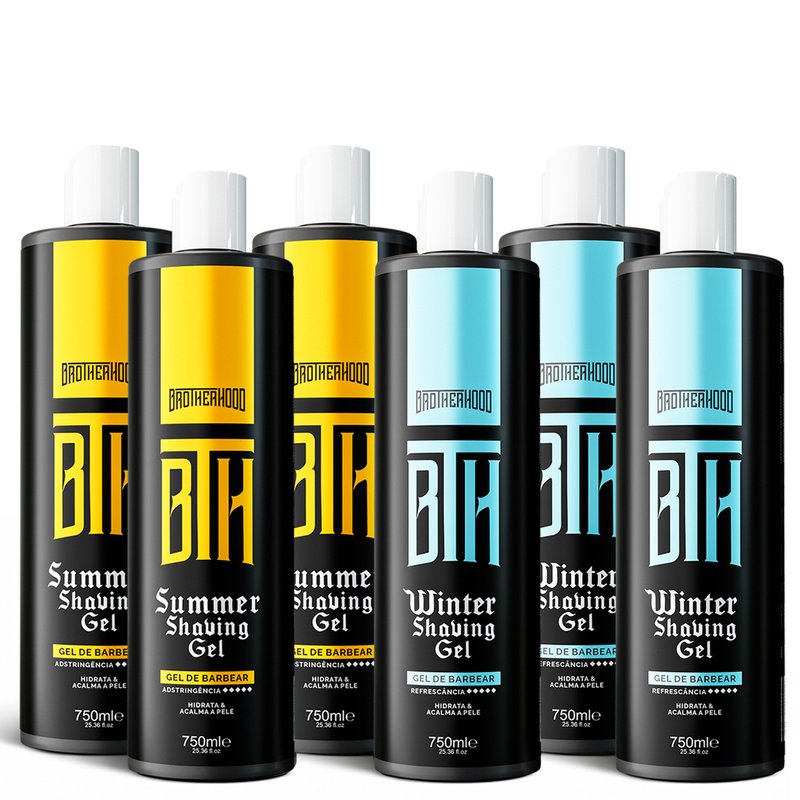 O Kit Shaving Gel de Barbear BTH Summer + Winter 750ml com Disktop foi desenvolvido para barbearias e para homens que buscam um barbear preciso, confortável e sem irritação, oferecendo duas opções profissionais de gel para diferentes preferências e experiências no atendimento.