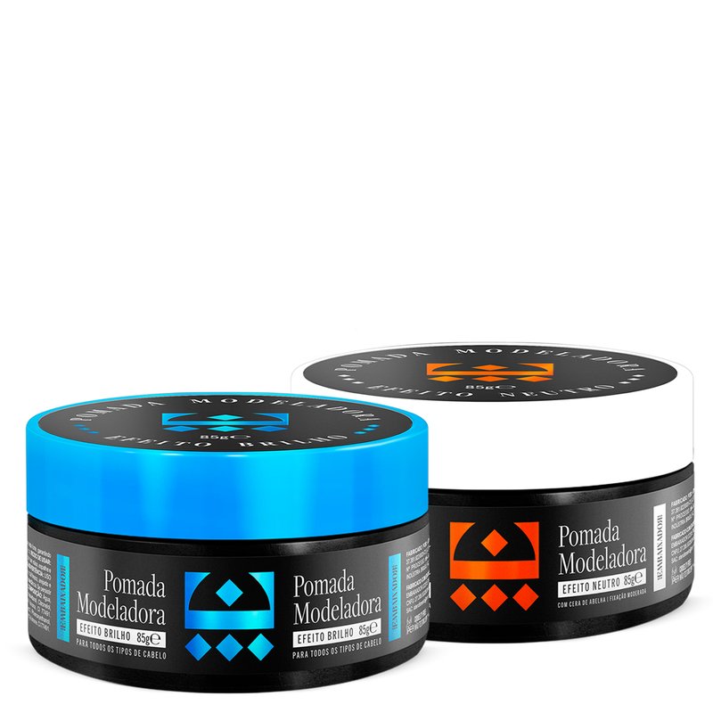 Modo de uso: Pegue uma pequena quantidade da Pomada Modeladora Efeito Brilho Embaixador nas mãos, espalhe e aplique nos cabelos úmidos ou secos, modelando como preferir.