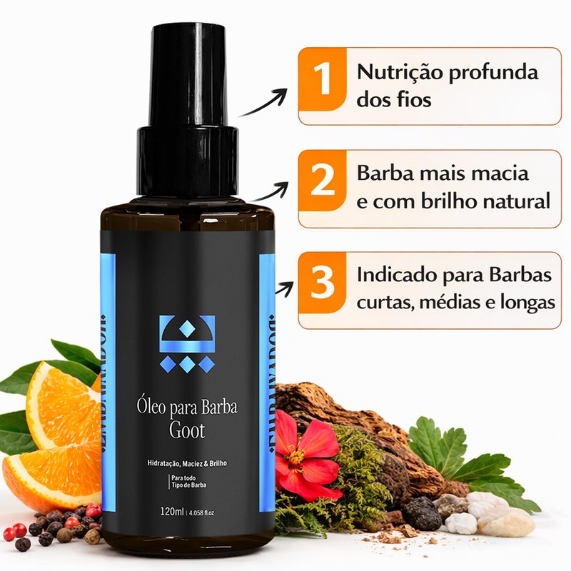 Óleo Para Barba Goot 30ml | Maciez, Brilho e Saúde dos Fios