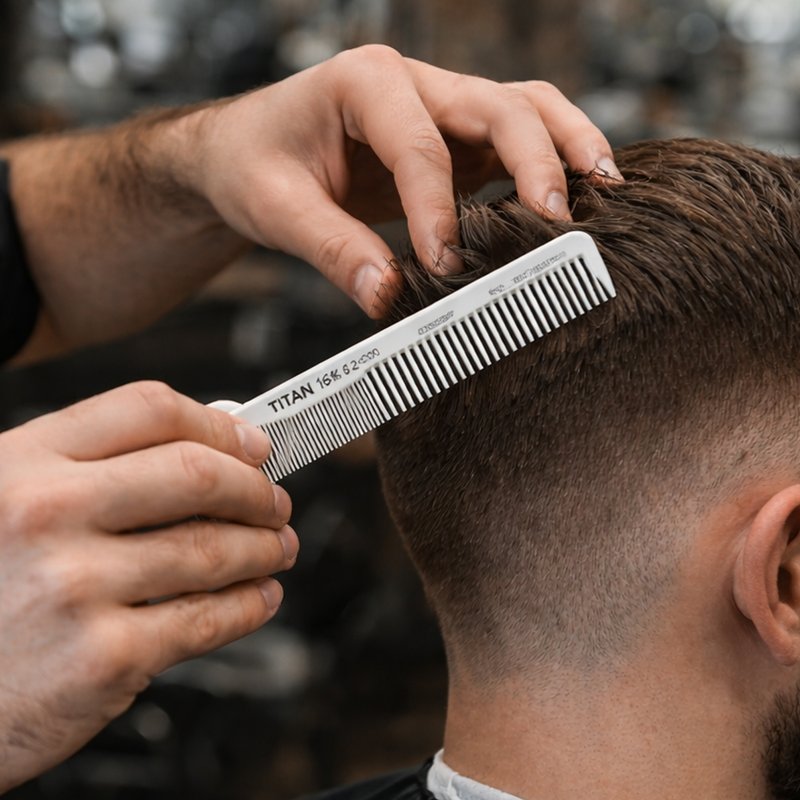 O Pente Titan Profissional foi desenvolvido para barbeiros e cabeleireiros exigentes, que buscam precisão, resistência e controle absoluto durante cortes, degradês, tesoura sobre pente e acabamentos.